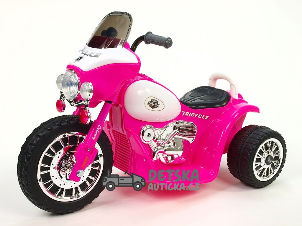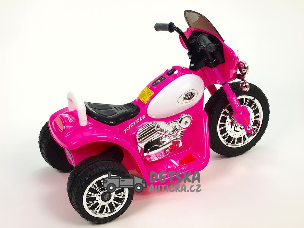 Chopper Harleyek na masivních kolech, baterie 6V/4,5Ah, růžový