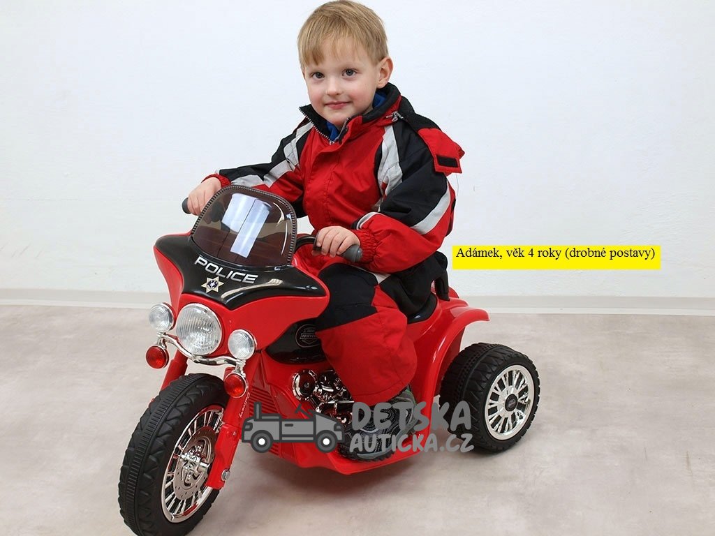 jízda vpřed a vzad sešlápnutím nožního pedálu, náhon zadního kola motorem 6V / 28W,