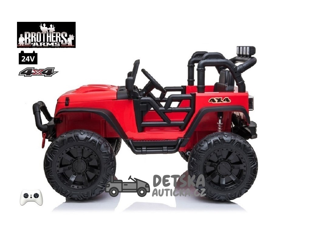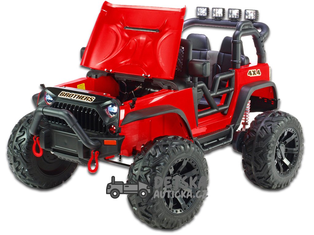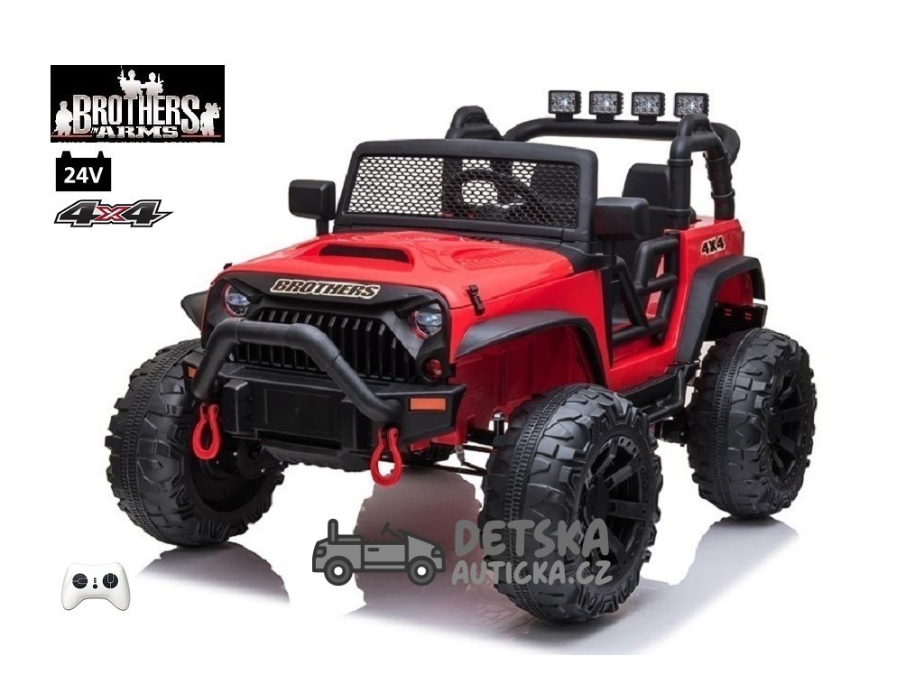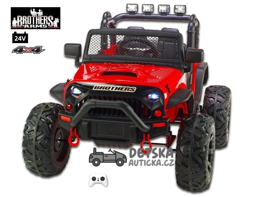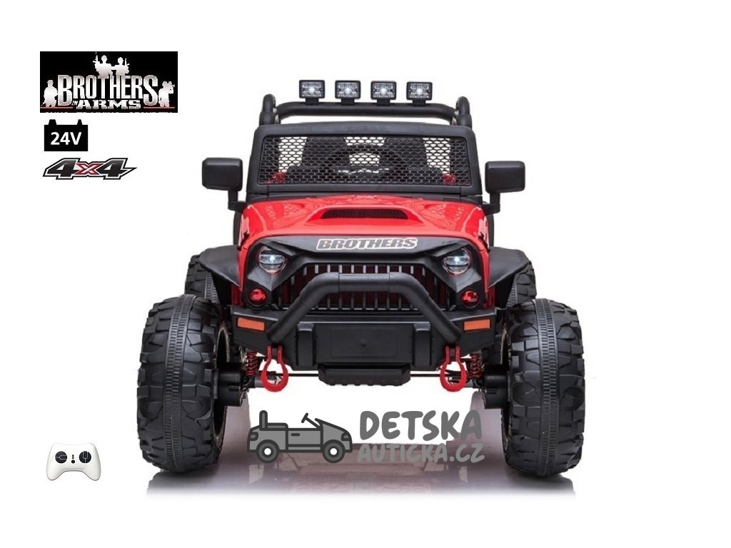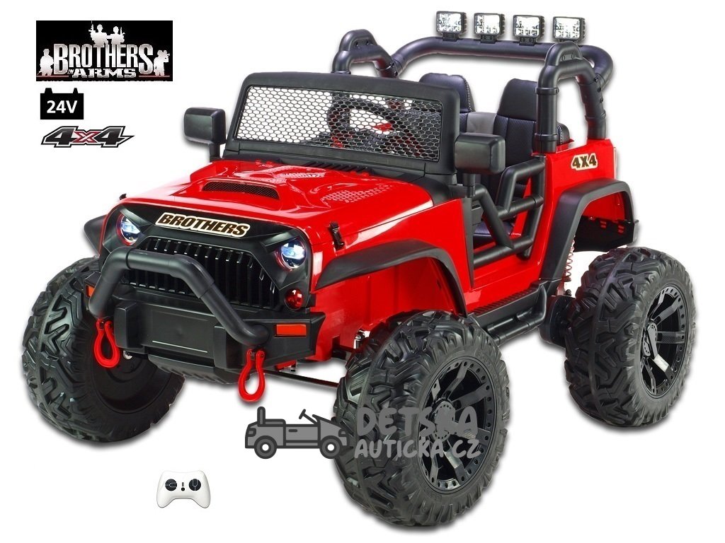 Dvoumístný silný džíp Brothers s 2,4G, 4x4, 24V/ 4x120W, červený