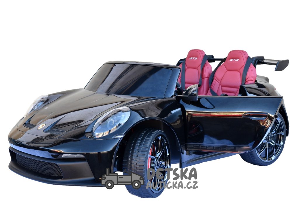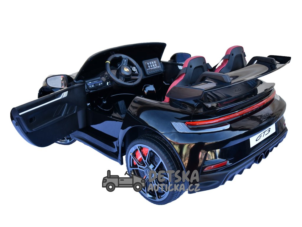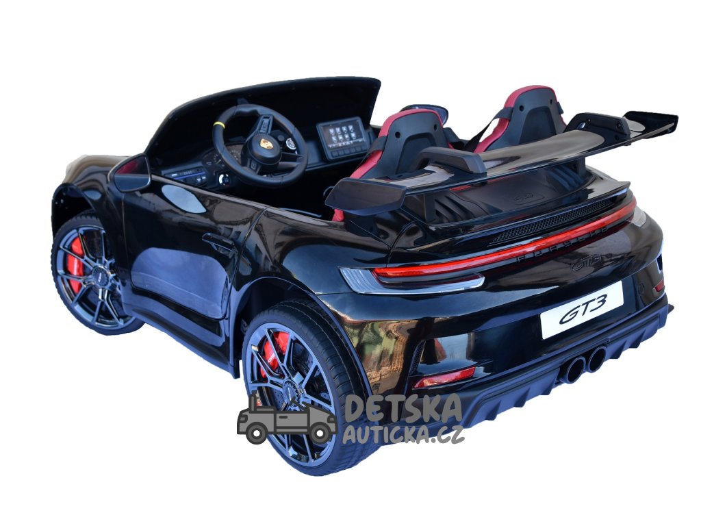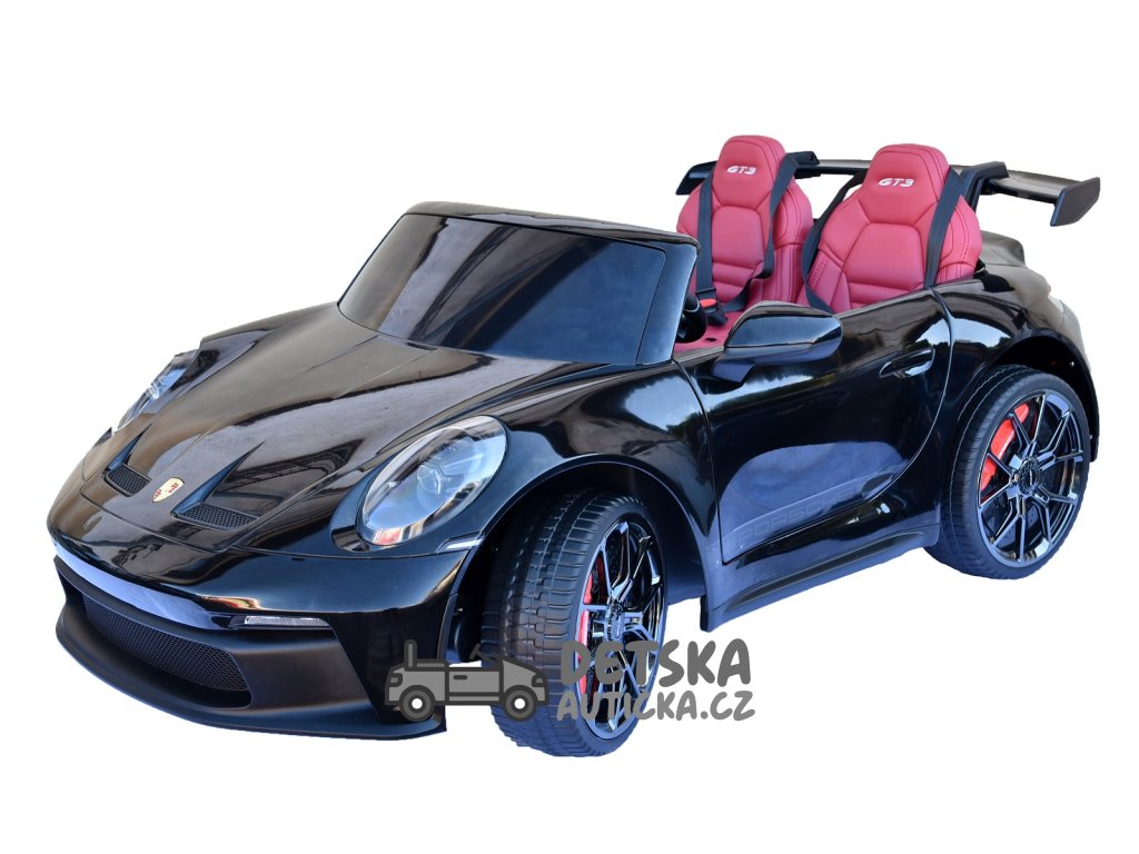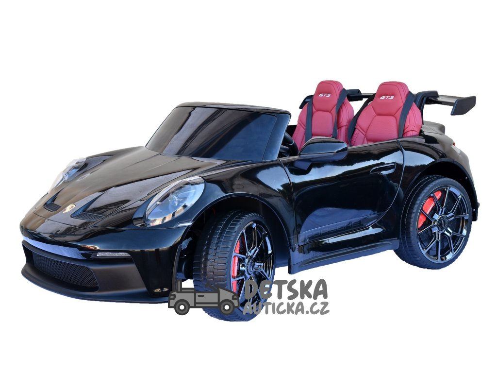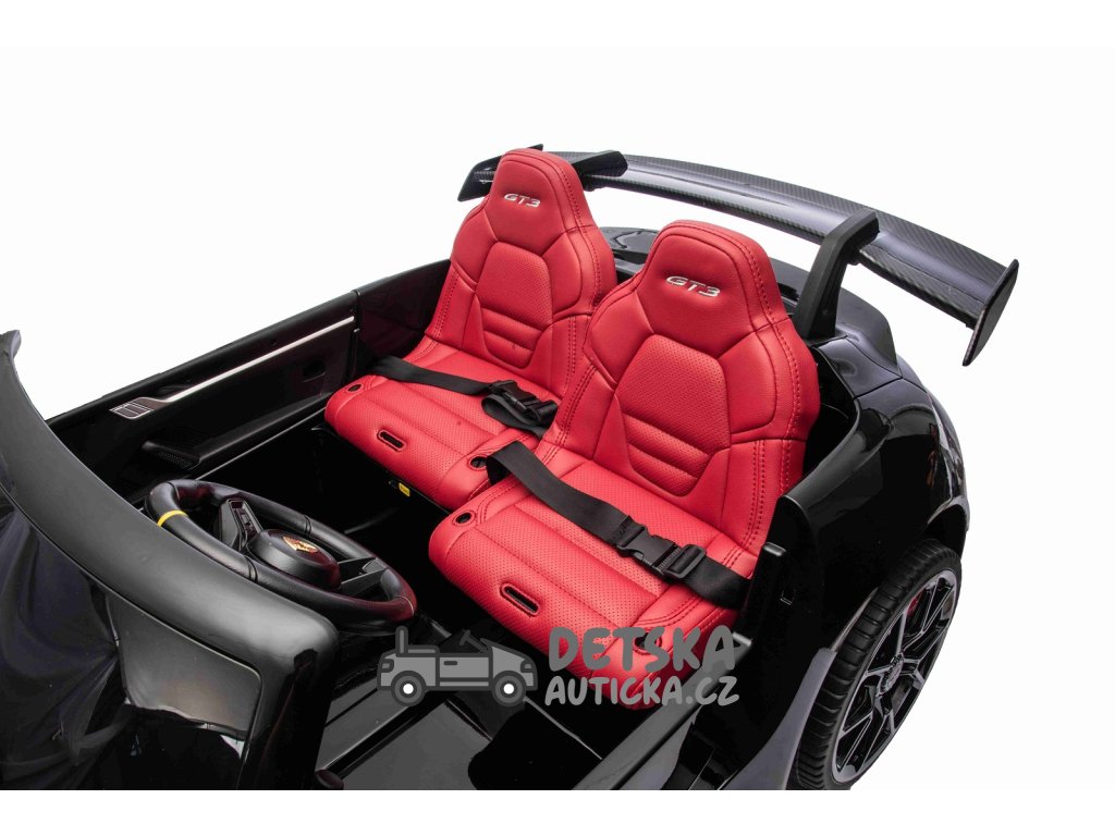 Dvoumístný sporťák Porsche 911 GT3 4x4 s 2,4G dálkovým ovládáním, 4x200W/24V, 24V/10Ah, černá metalíza, červené sedačky
