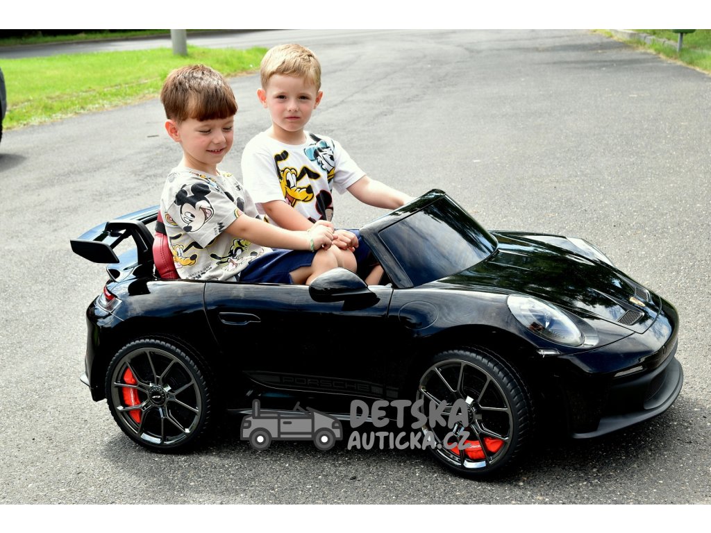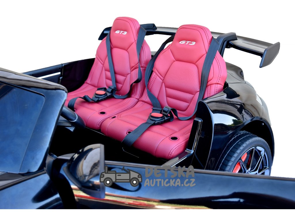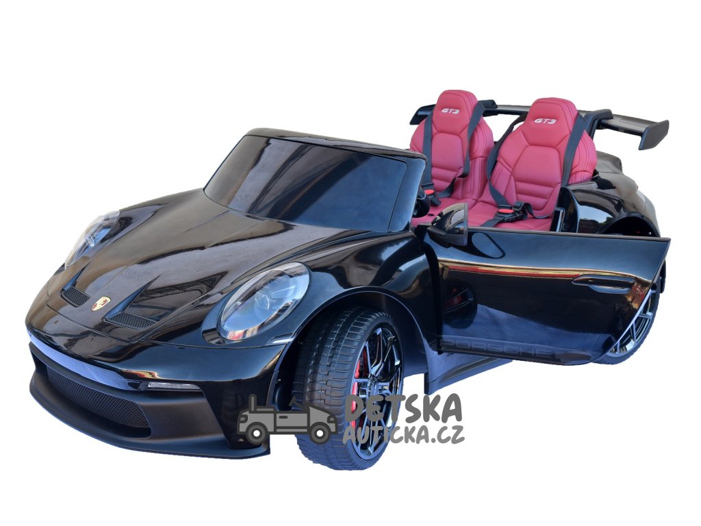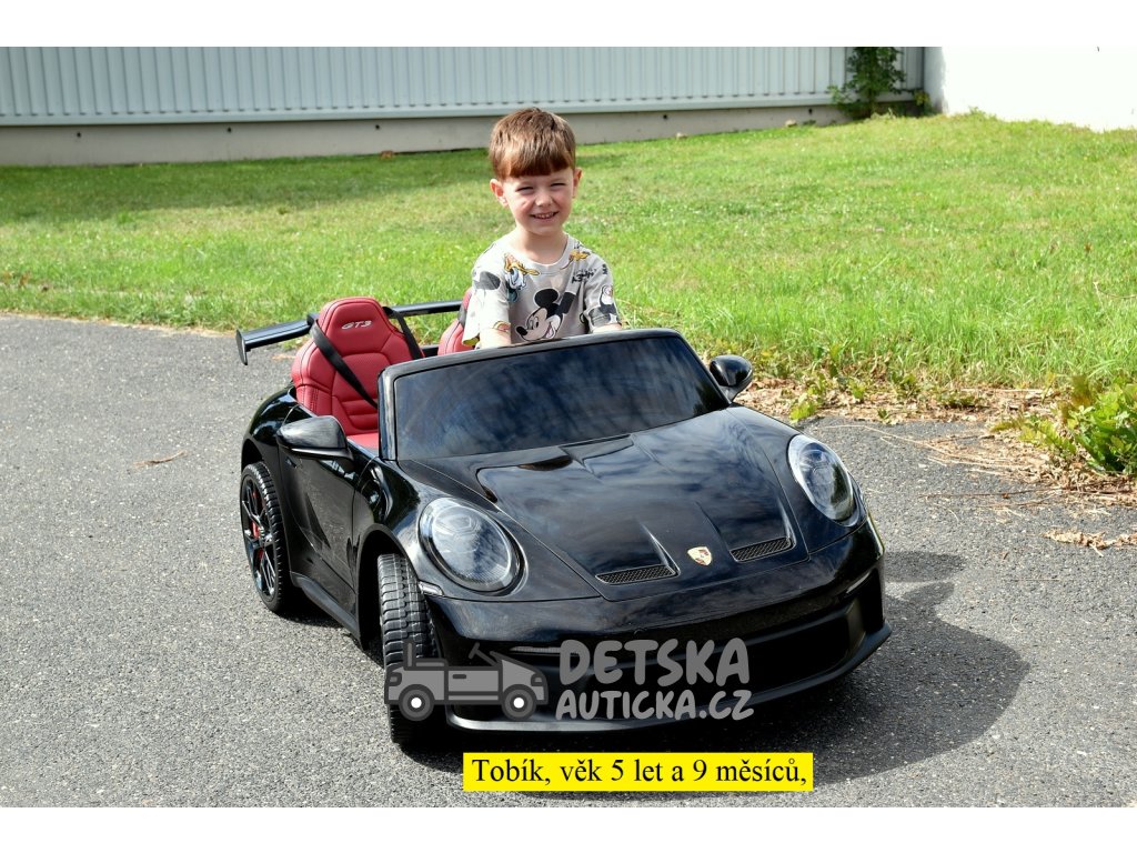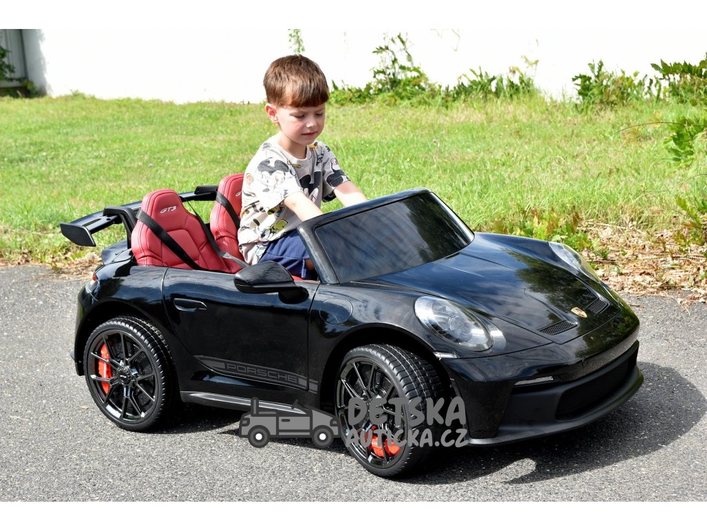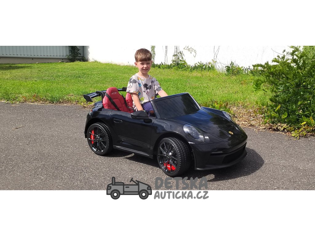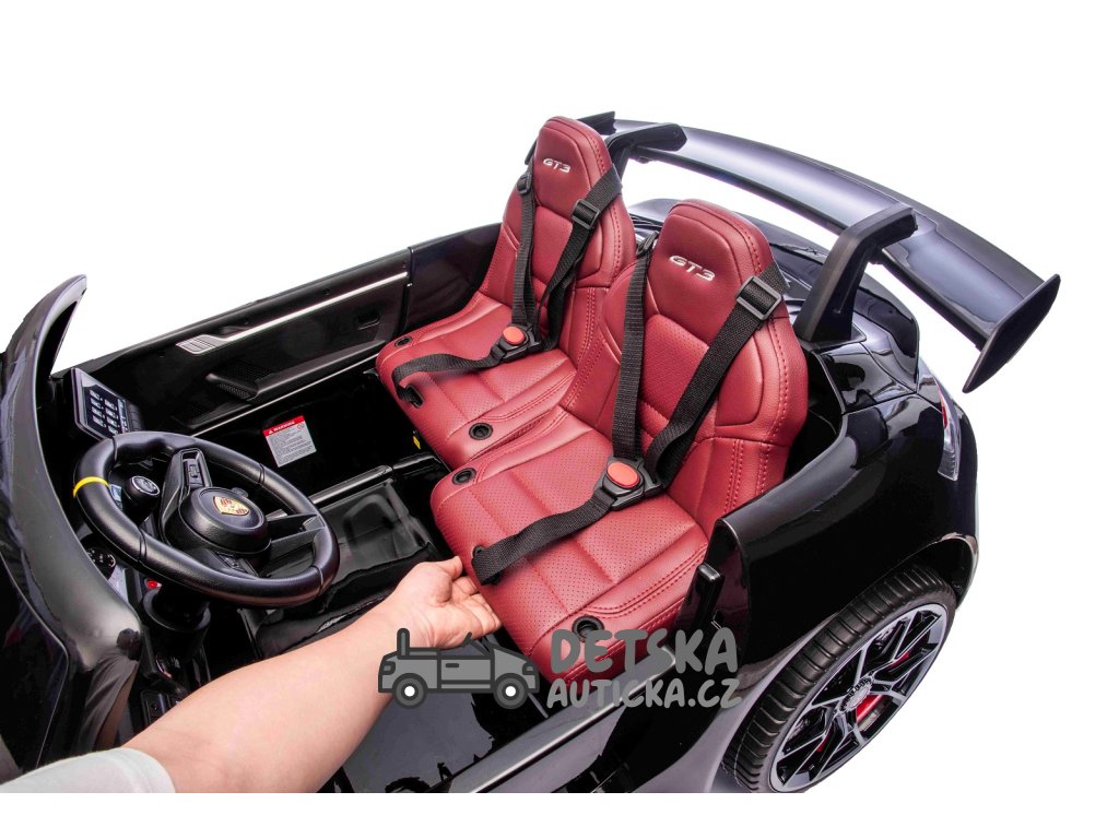 Dvoumístný sporťák Porsche 911 GT3 4x4 s 2,4G dálkovým ovládáním, 4x200W/24V, 24V/10Ah, černá metalíza, červené sedačky