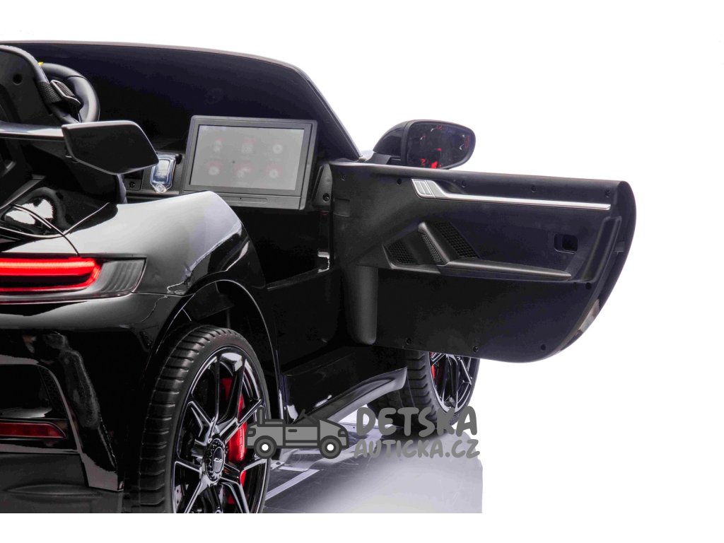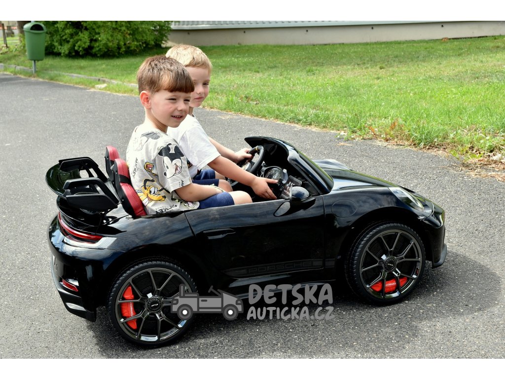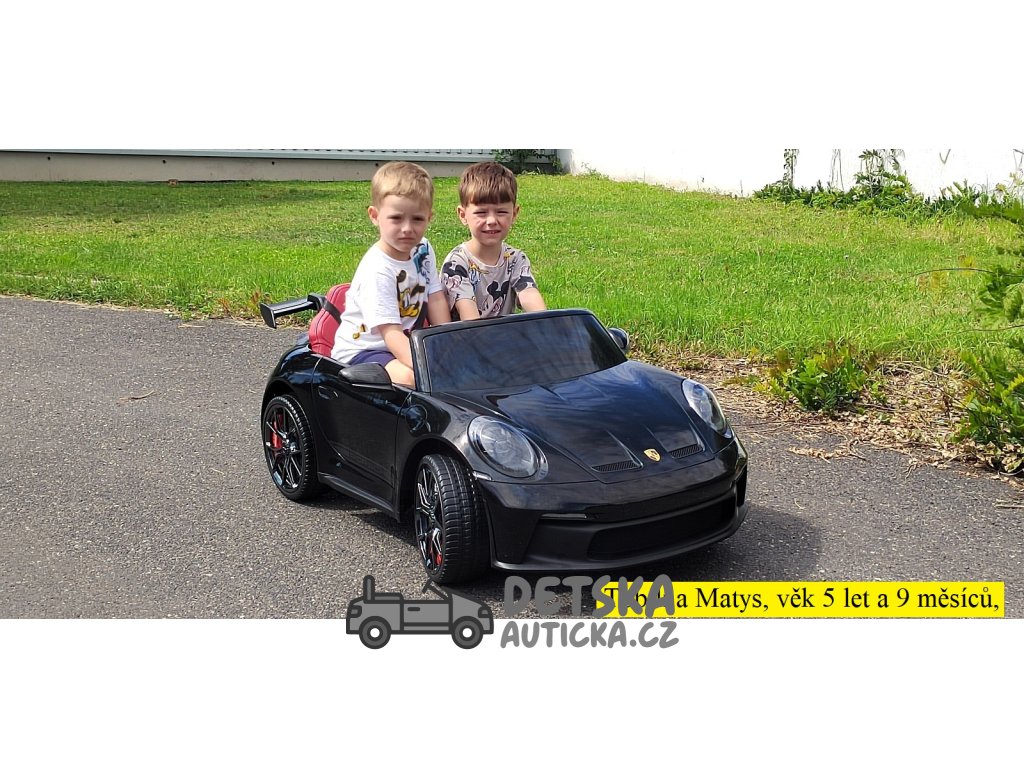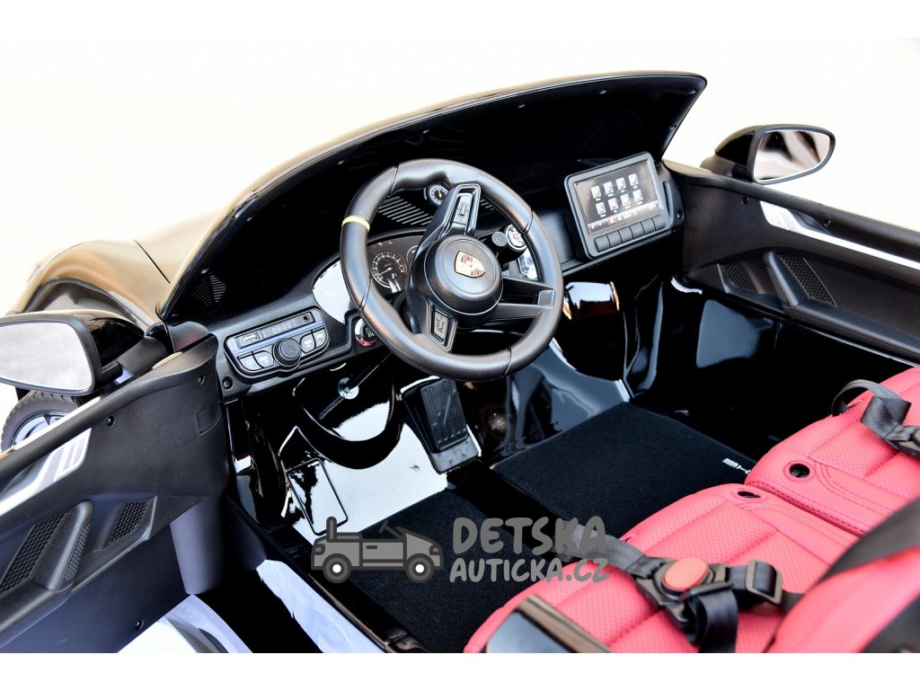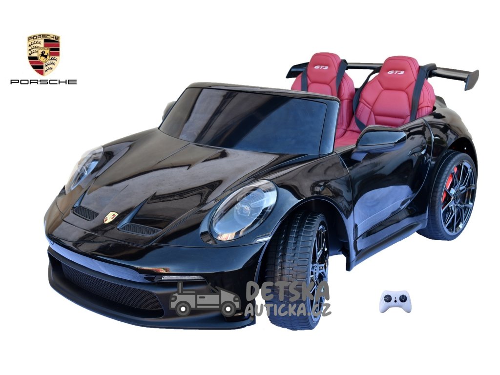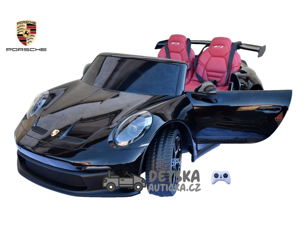 Dvoumístný sporťák Porsche 911 GT3 4x4 s 2,4G dálkovým ovládáním, 4x200W/24V, 24V/10Ah, černá metalíza, červené sedačky