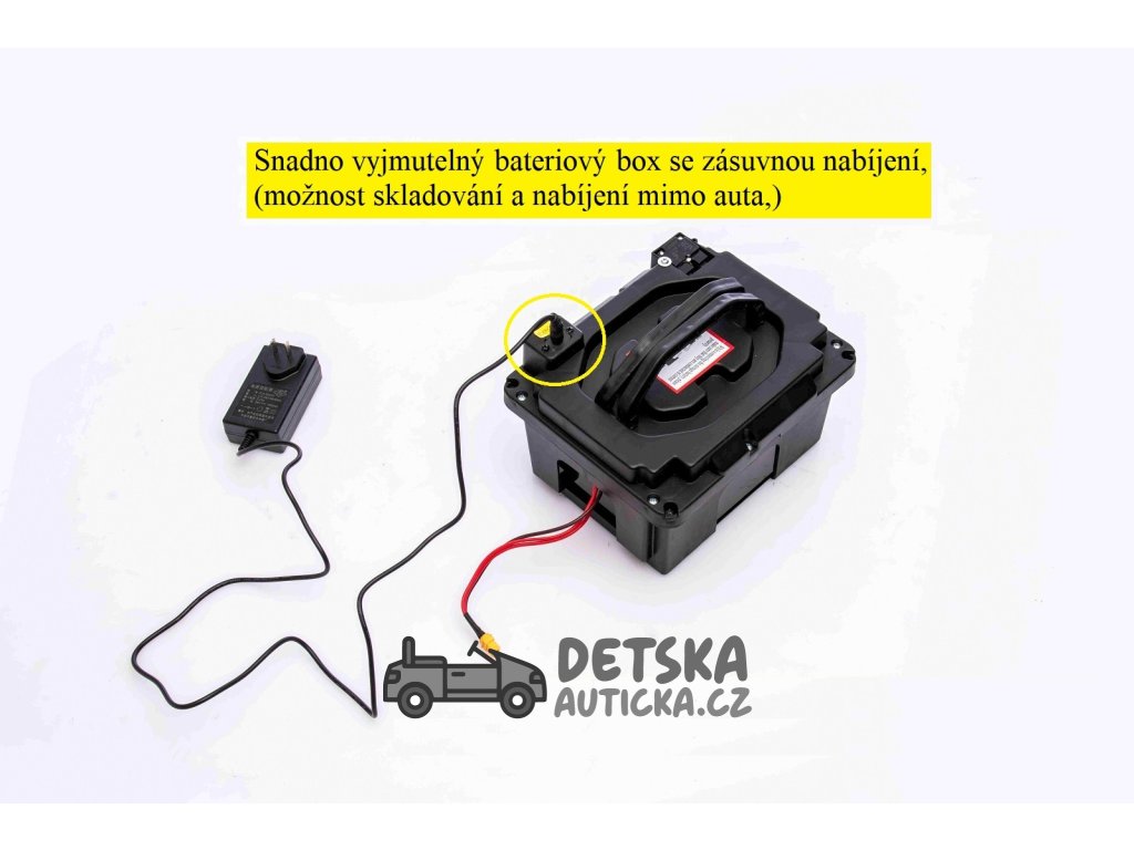 v nabídce máme i náhradní originální bateriový box 24V/10Ah s kompletní kabeláží a možností nabíjení boxu zvlášť mimo auto, po snadném odejmutí sedačky a otevření krytu box rychle a jednoduše vyměníte za stávající vybitý box a zdvojnásobíte tím dobu jízdy,