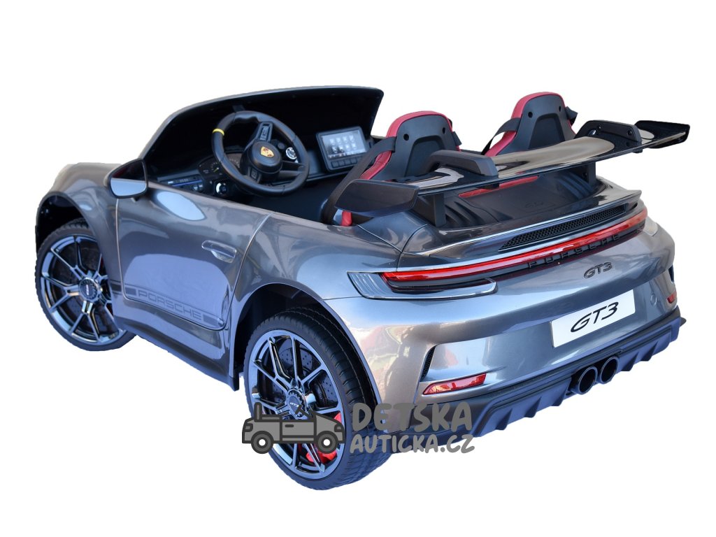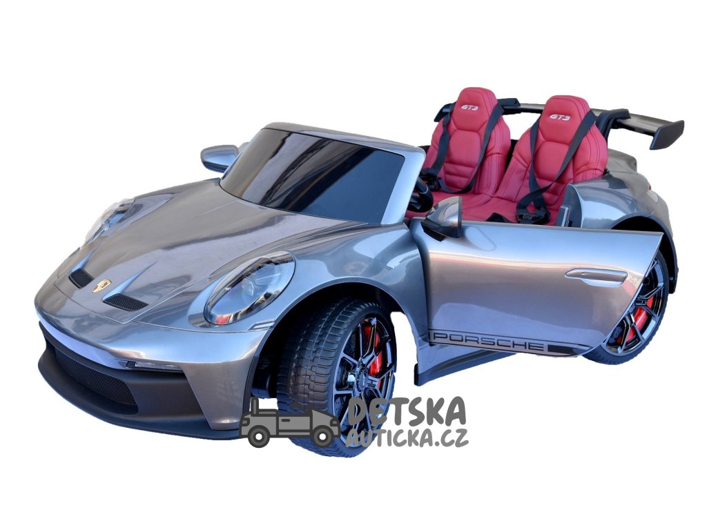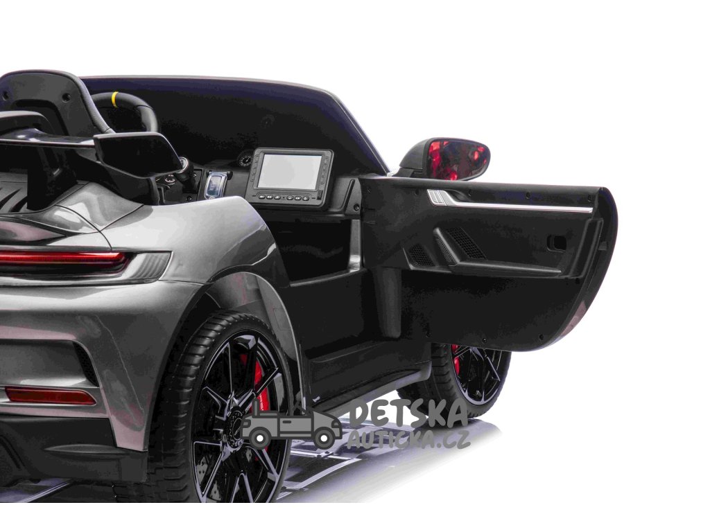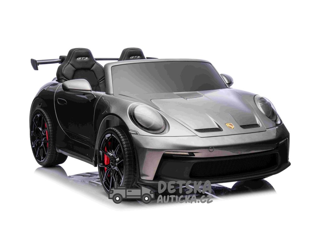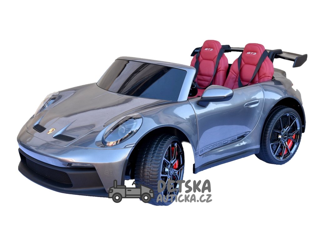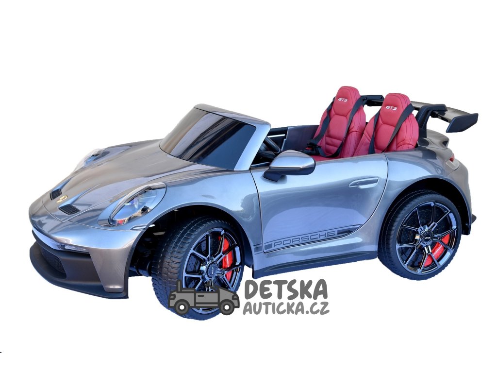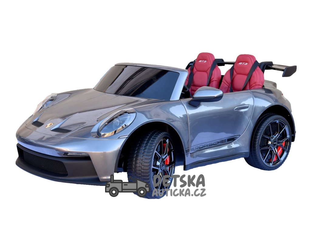 Dvoumístný sporťák Porsche 911 GT3 4x4 s 2,4G dálkovým ovládáním, 4x200W/24V, 24V/10Ah, šedá metalíza, červené sedačky