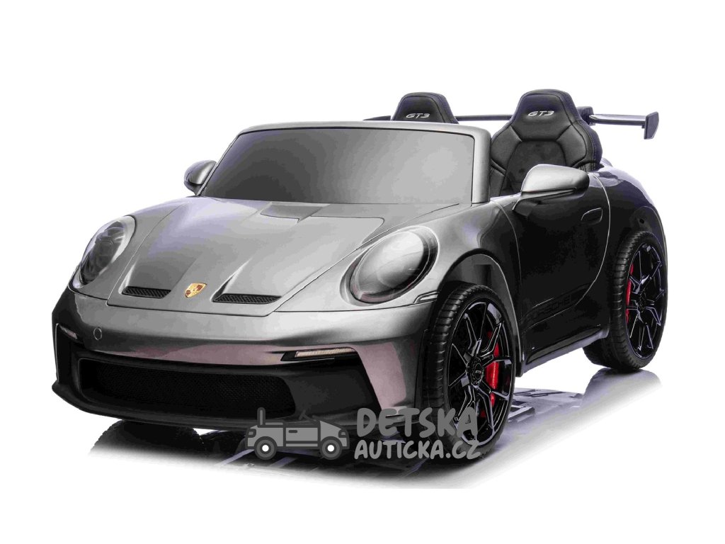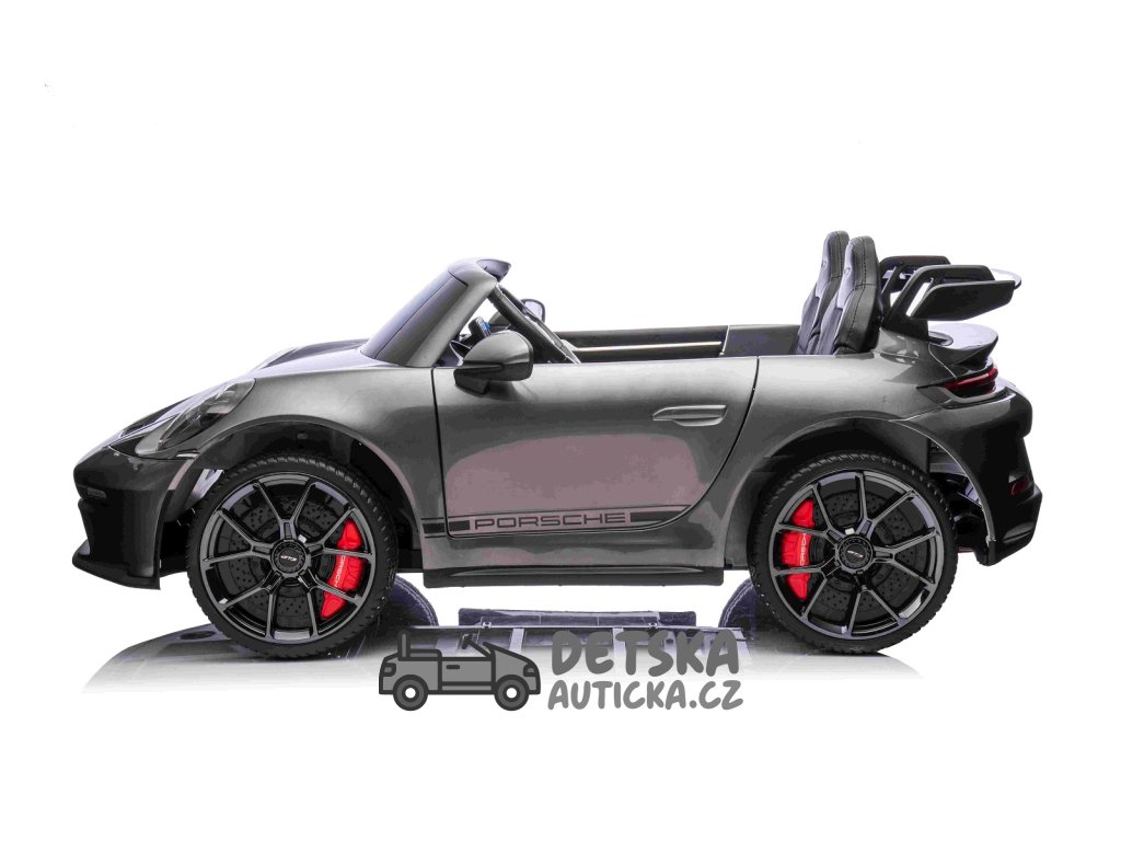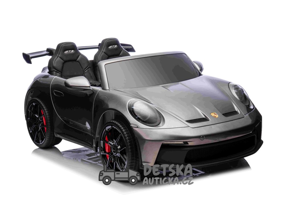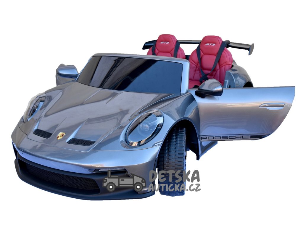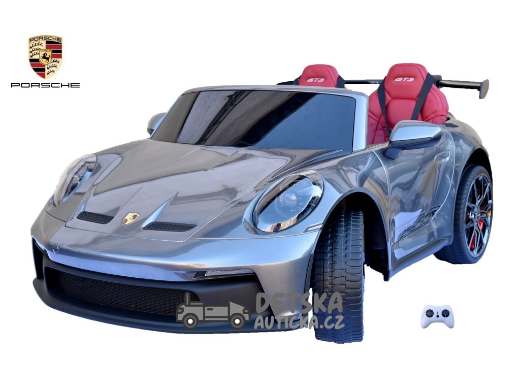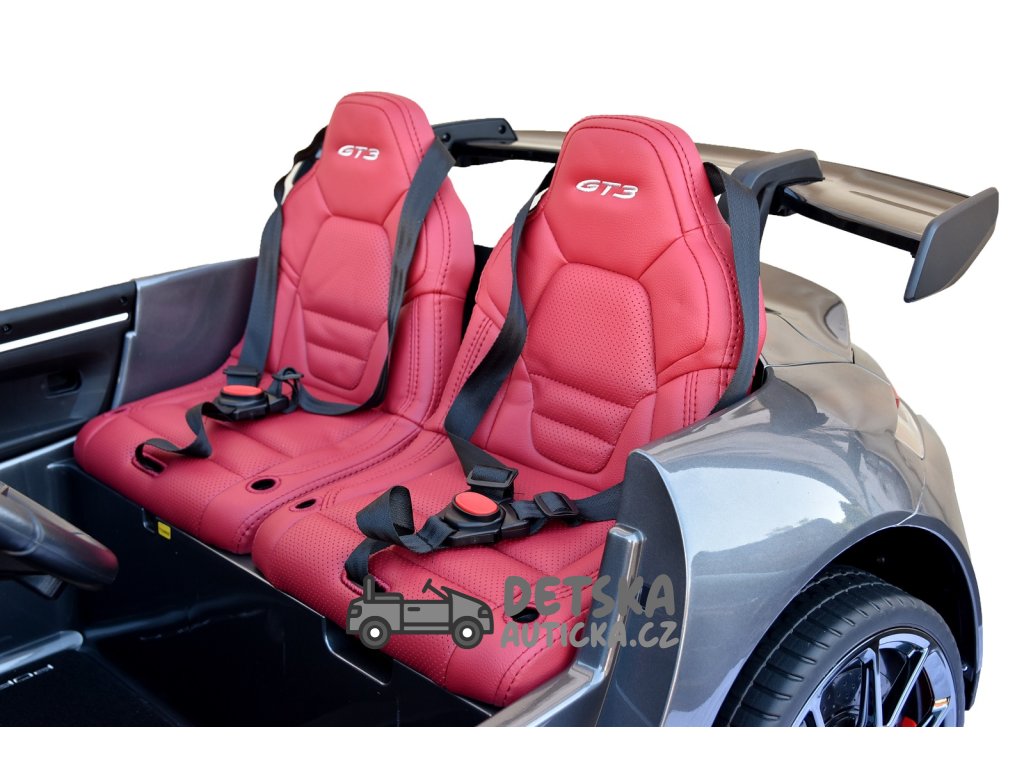 Dvoumístný sporťák Porsche 911 GT3 4x4 s 2,4G dálkovým ovládáním, 4x200W/24V, 24V/10Ah, šedá metalíza, červené sedačky