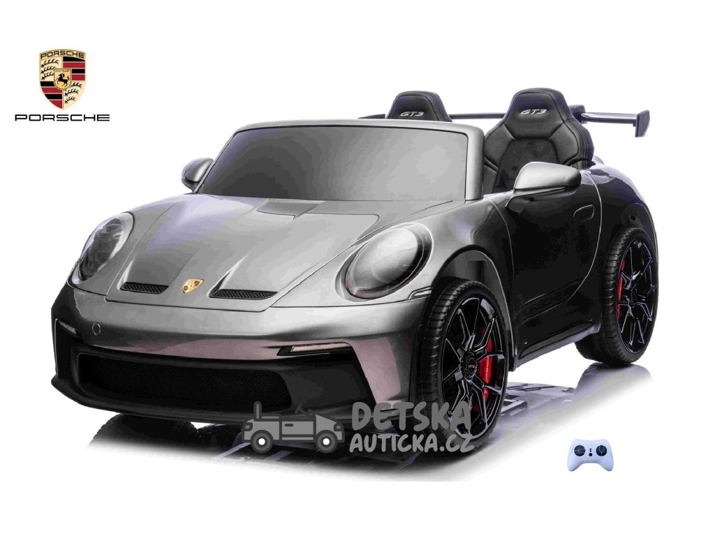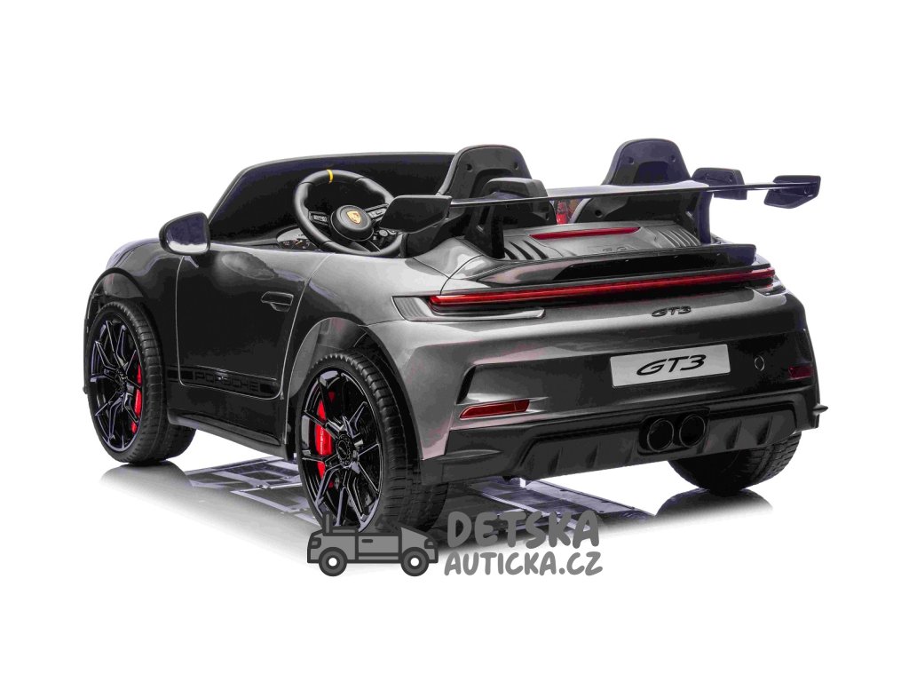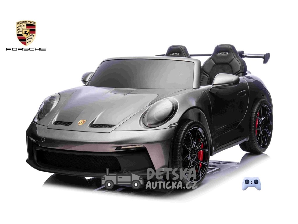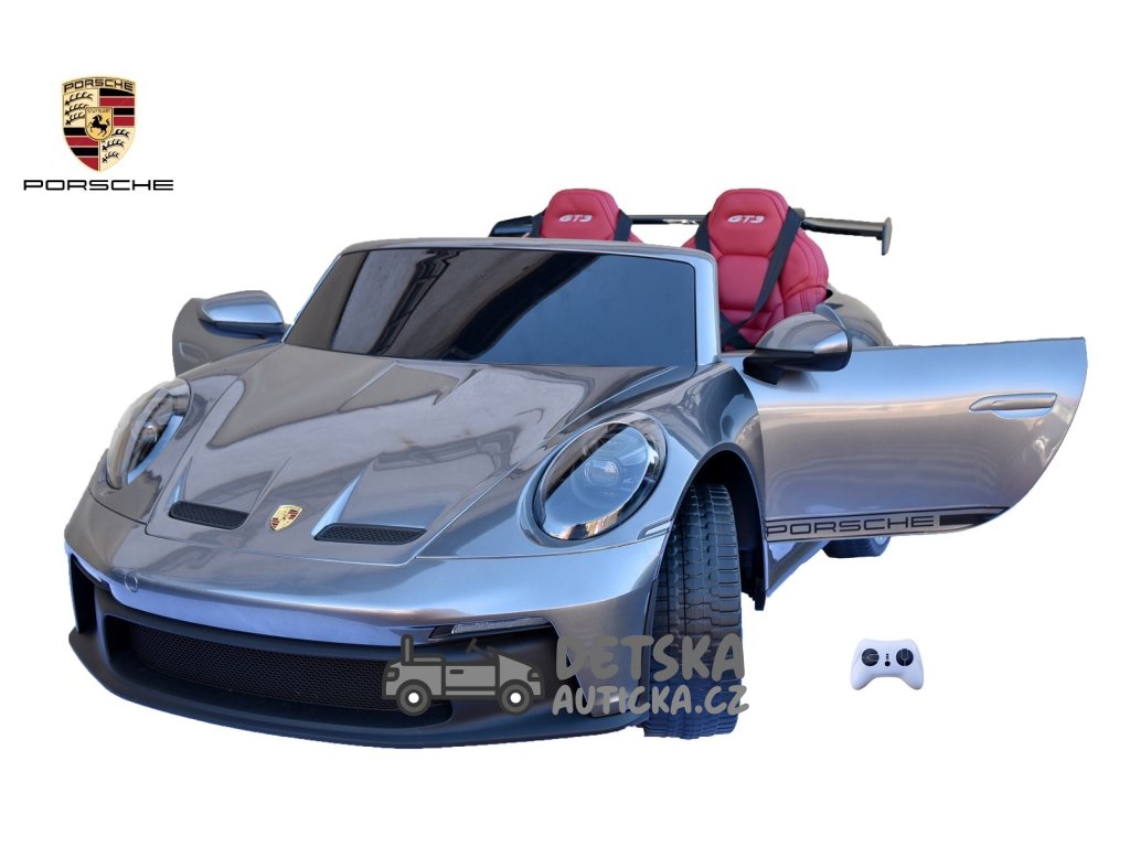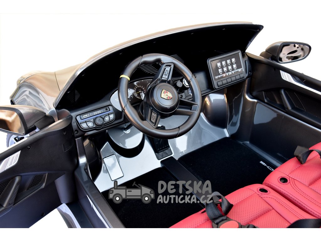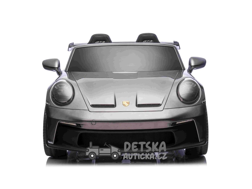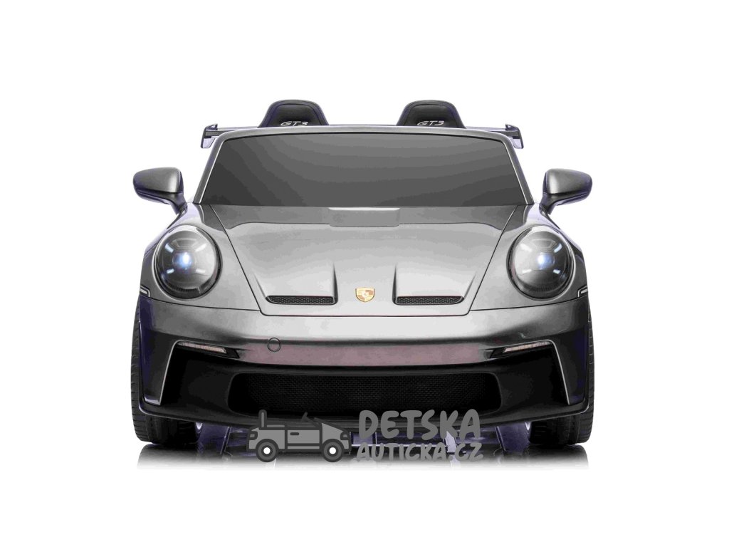 Dvoumístný sporťák Porsche 911 GT3 4x4 s 2,4G dálkovým ovládáním, 4x200W/24V, 24V/10Ah, šedá metalíza, červené sedačky