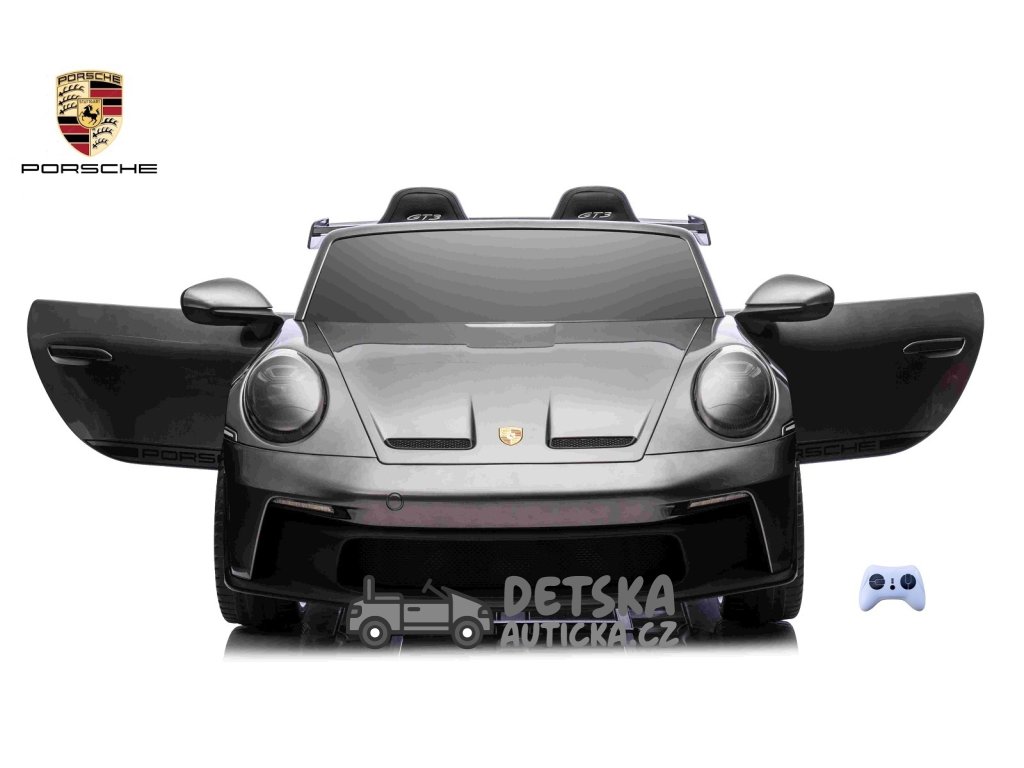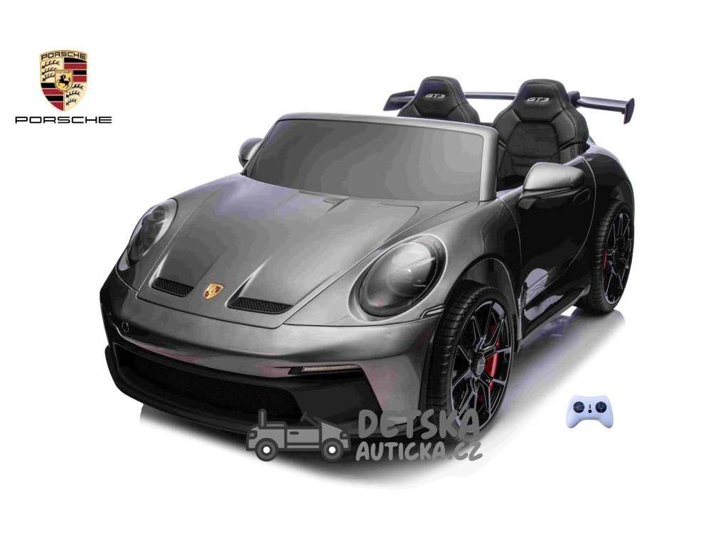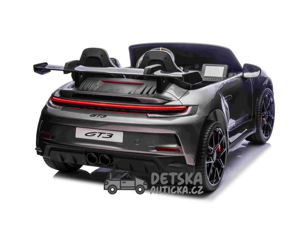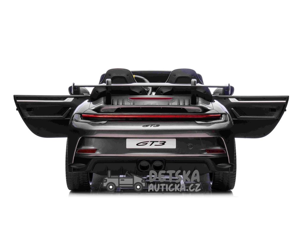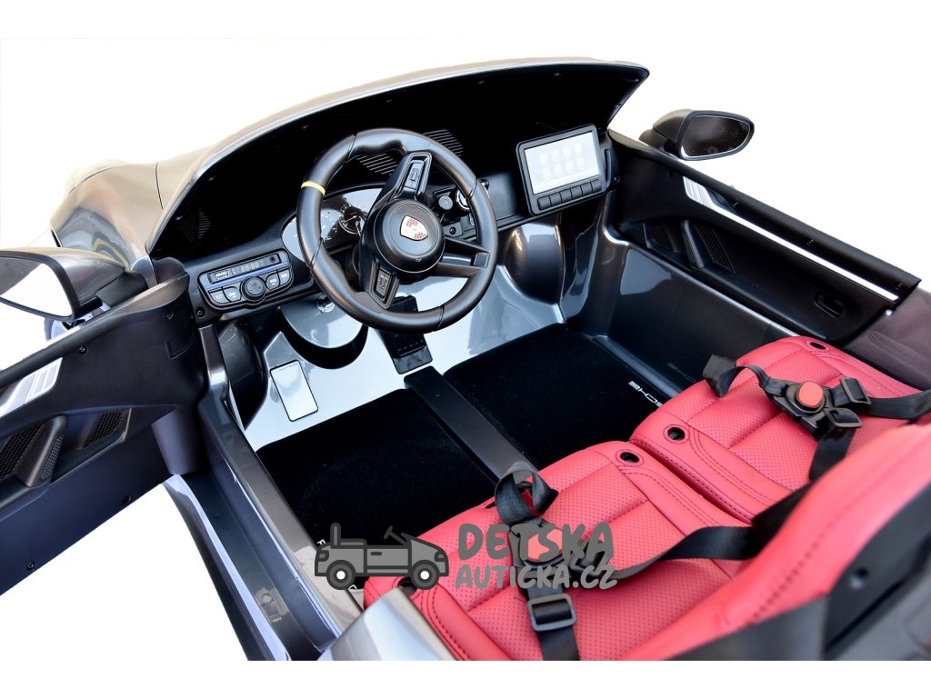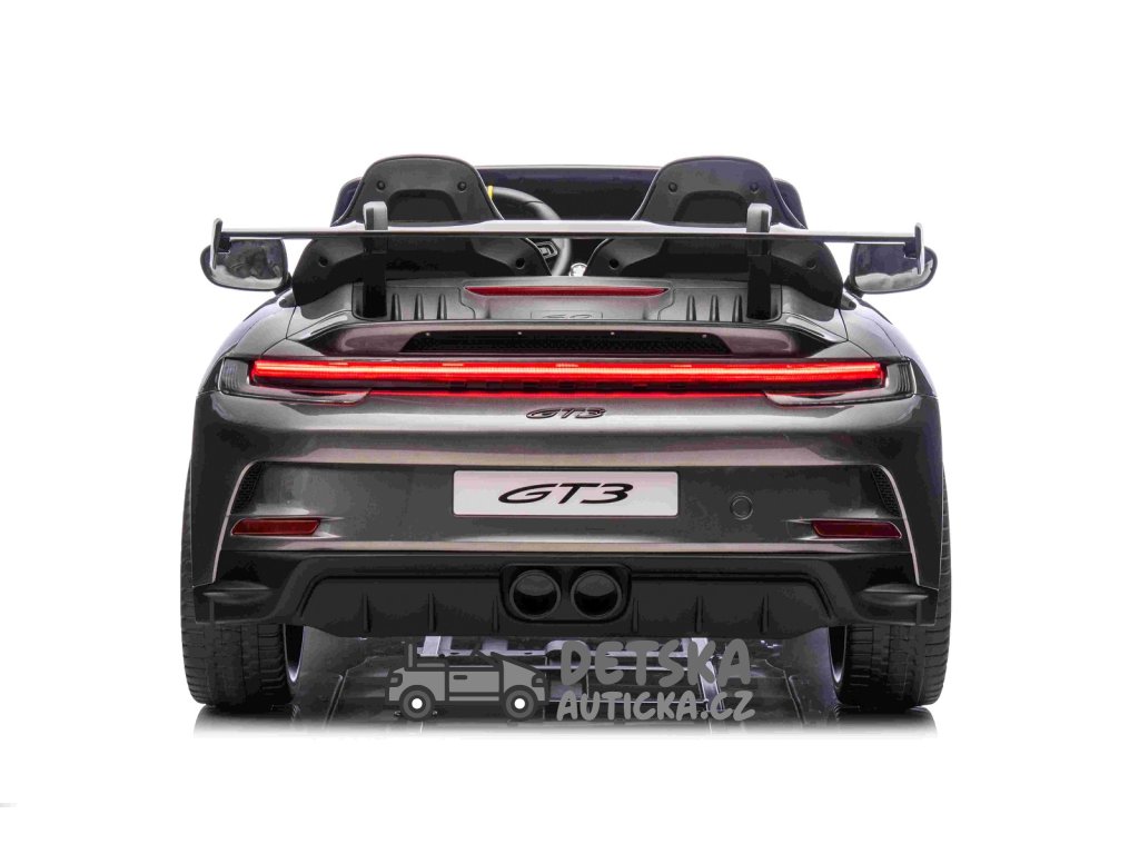 Dvoumístný sporťák Porsche 911 GT3 4x4 s 2,4G dálkovým ovládáním, 4x200W/24V, 24V/10Ah, šedá metalíza, červené sedačky