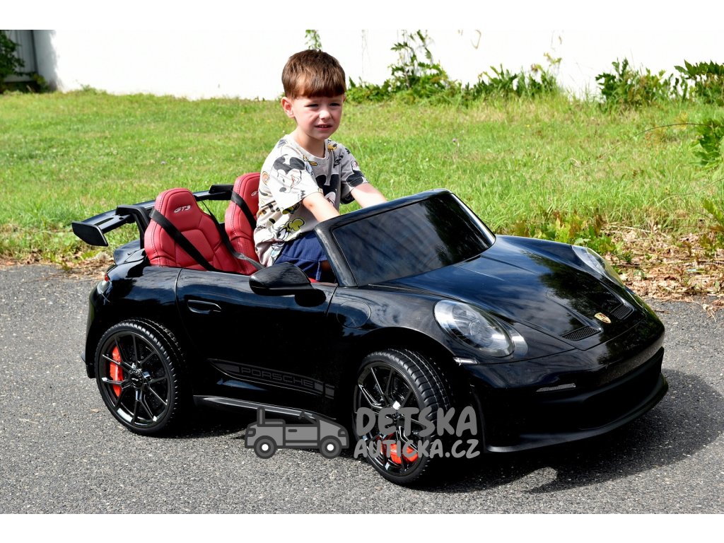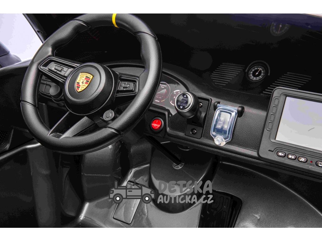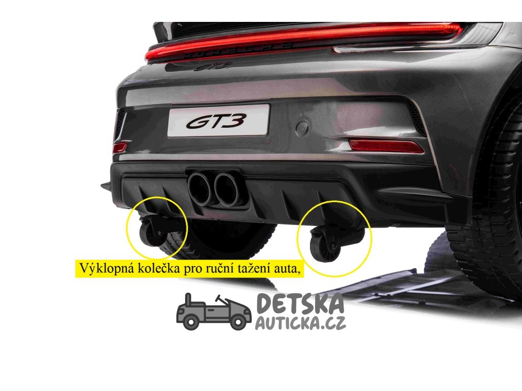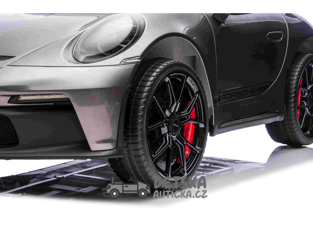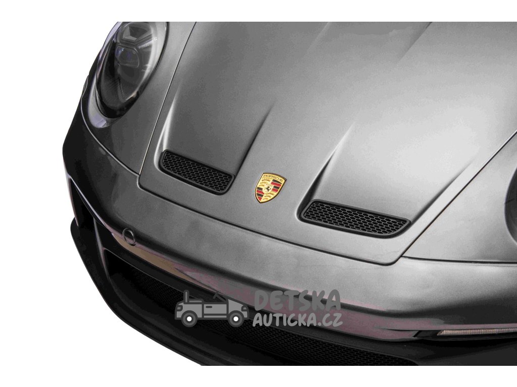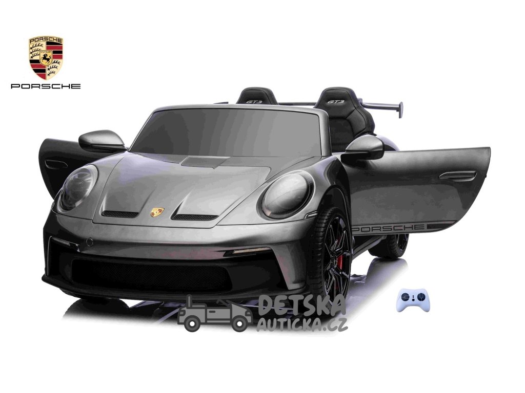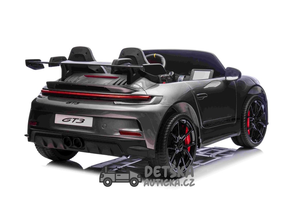 Dvoumístný sporťák Porsche 911 GT3 4x4 s 2,4G dálkovým ovládáním, 4x200W/24V, 24V/10Ah, šedá metalíza, červené sedačky