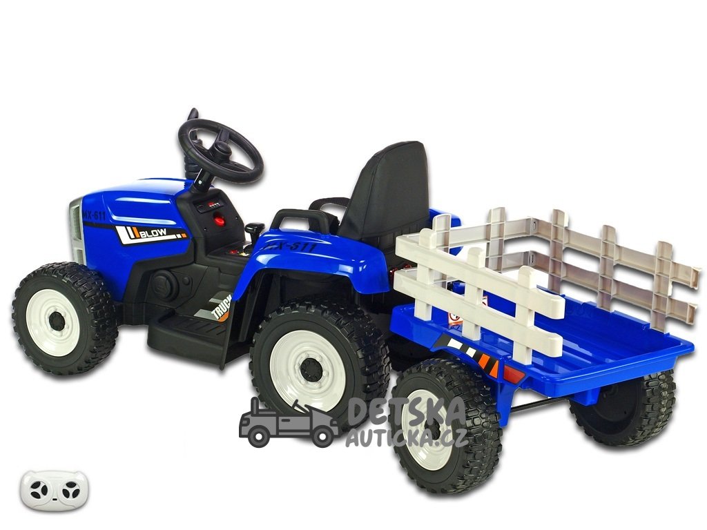 Elektrický Rozkošný traktor s vlekem, 2,4G, modrý