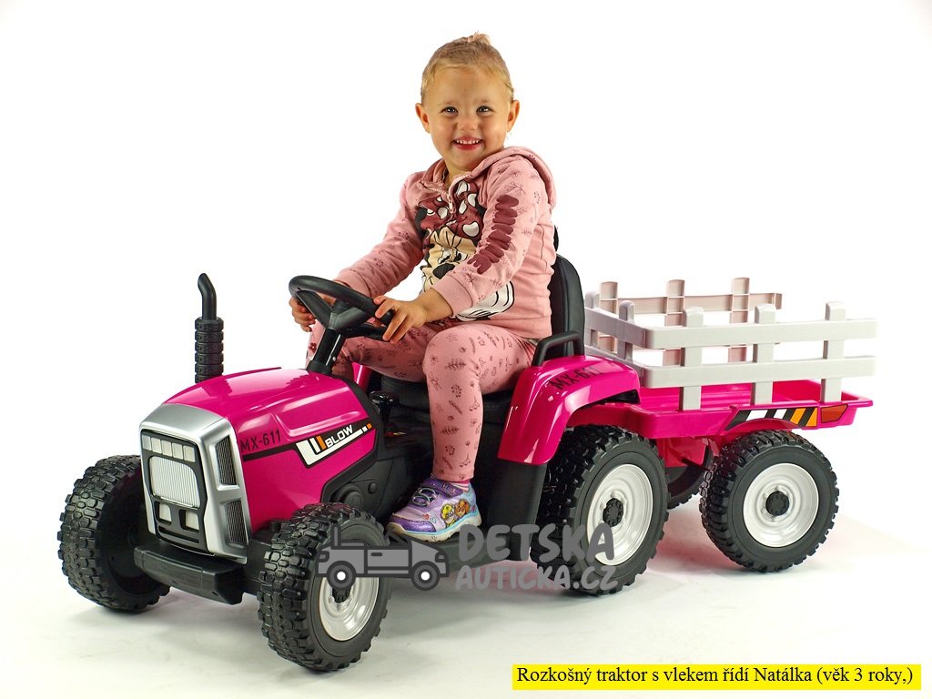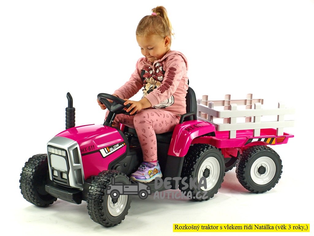 Elektrický Rozkošný traktor s vlekem, 2,4G, růžový