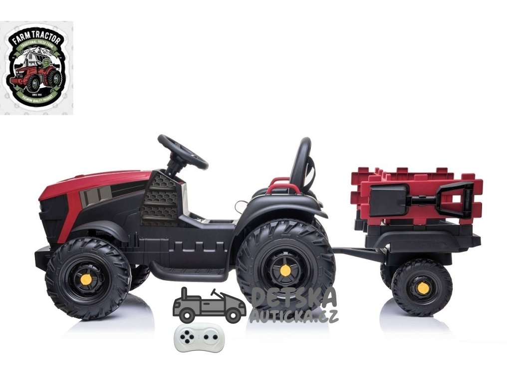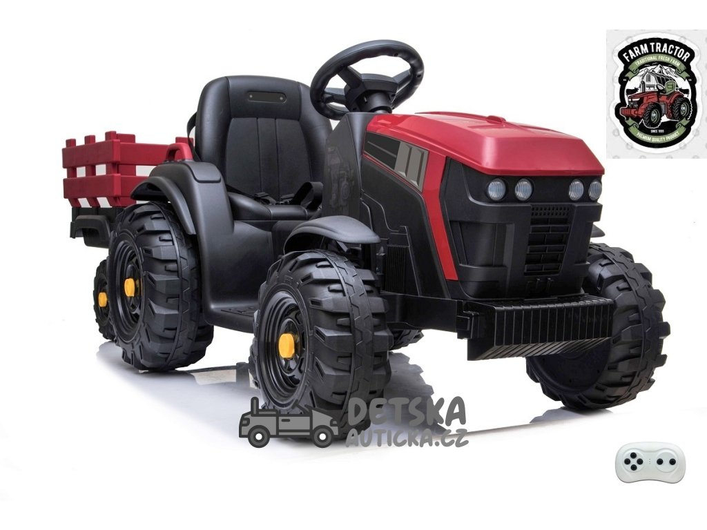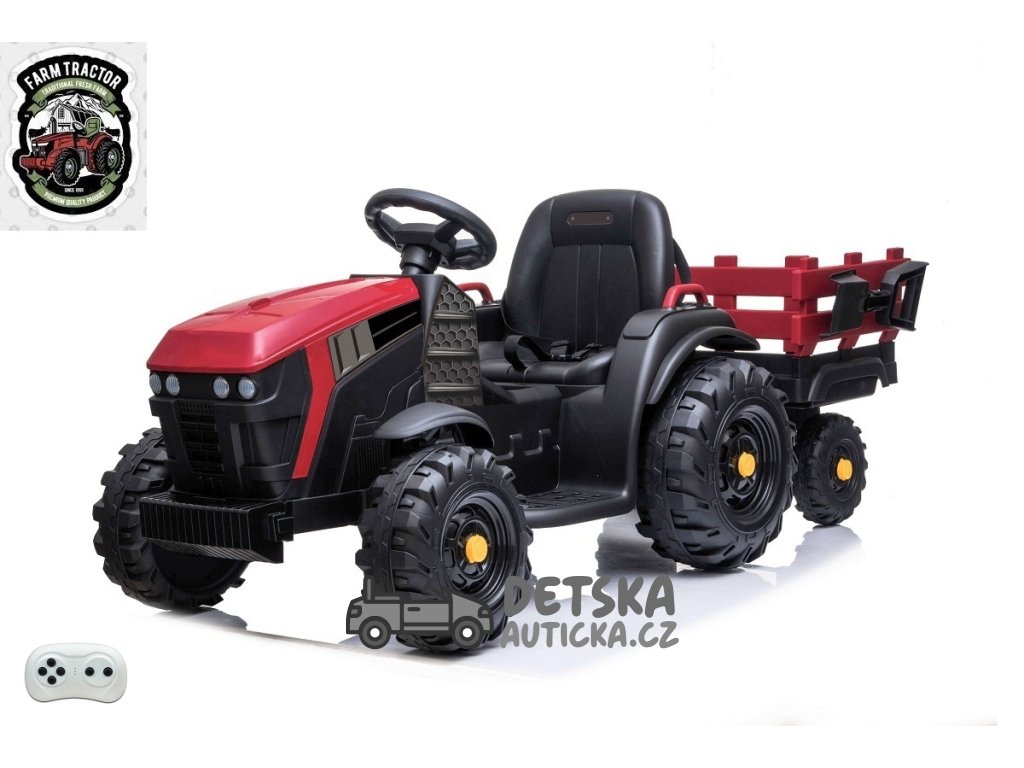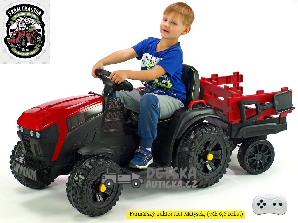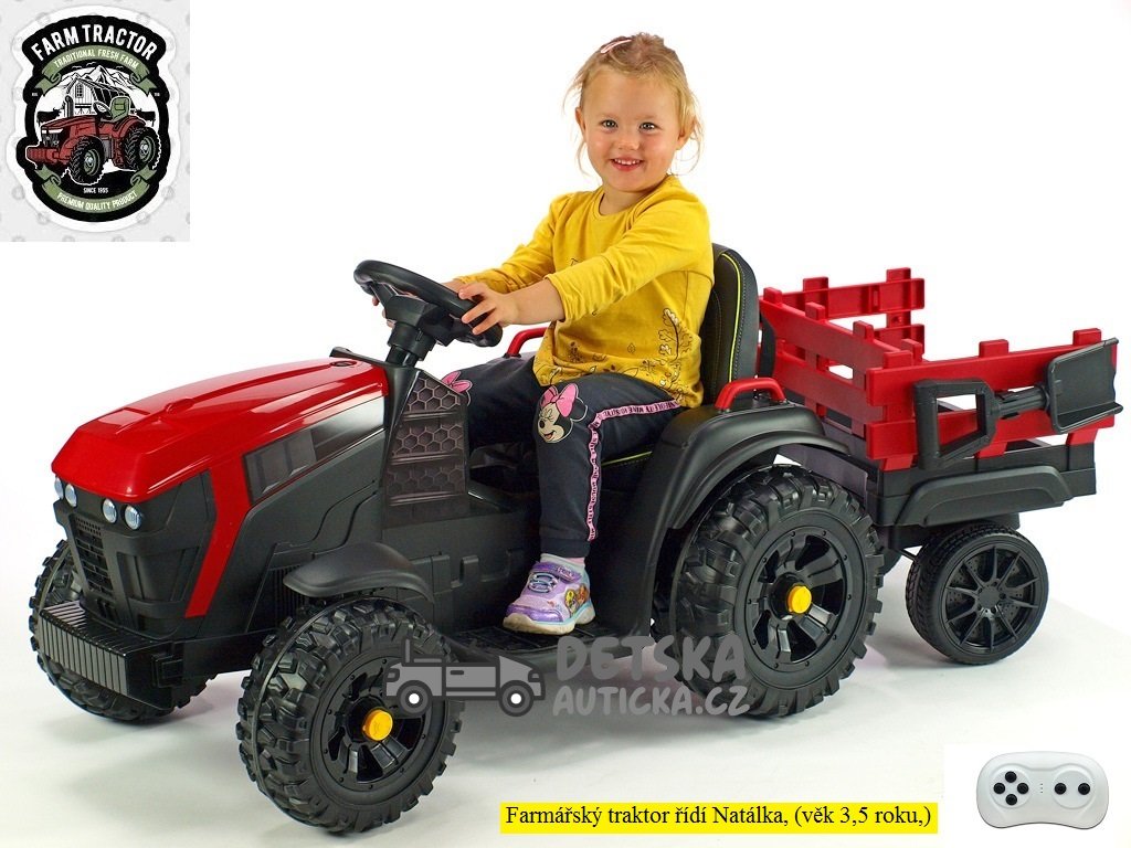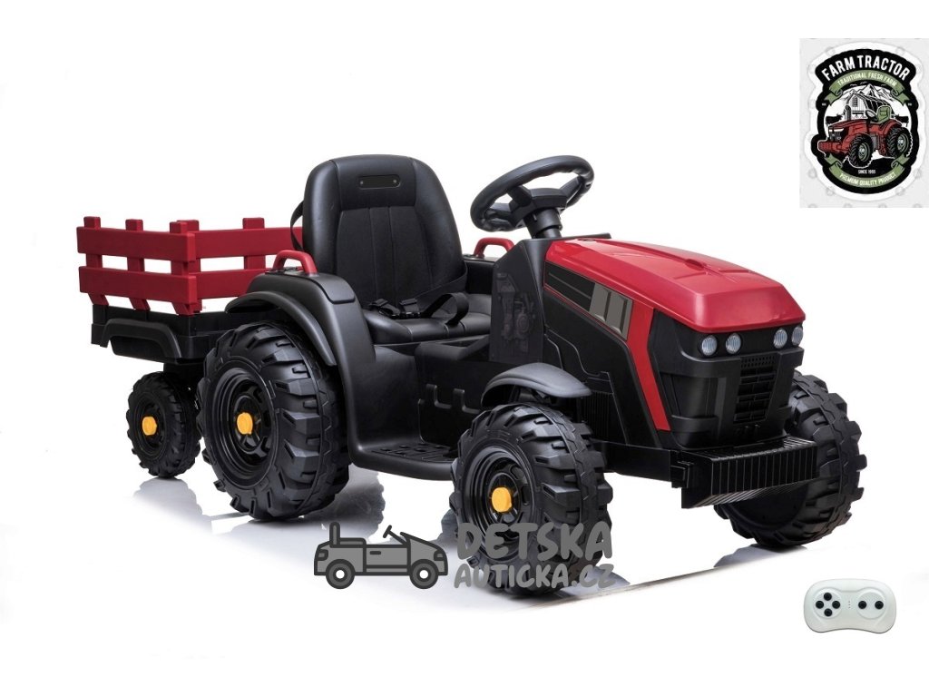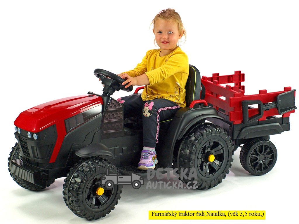 Farmářský traktor s 2,4G, vlekem a lopatou, baterie 12V/14Ah !!, červený