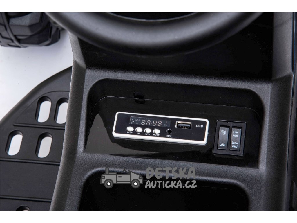 audio player, USB, vstup Mp3, FM rádio, voltmetr nabití baterie,