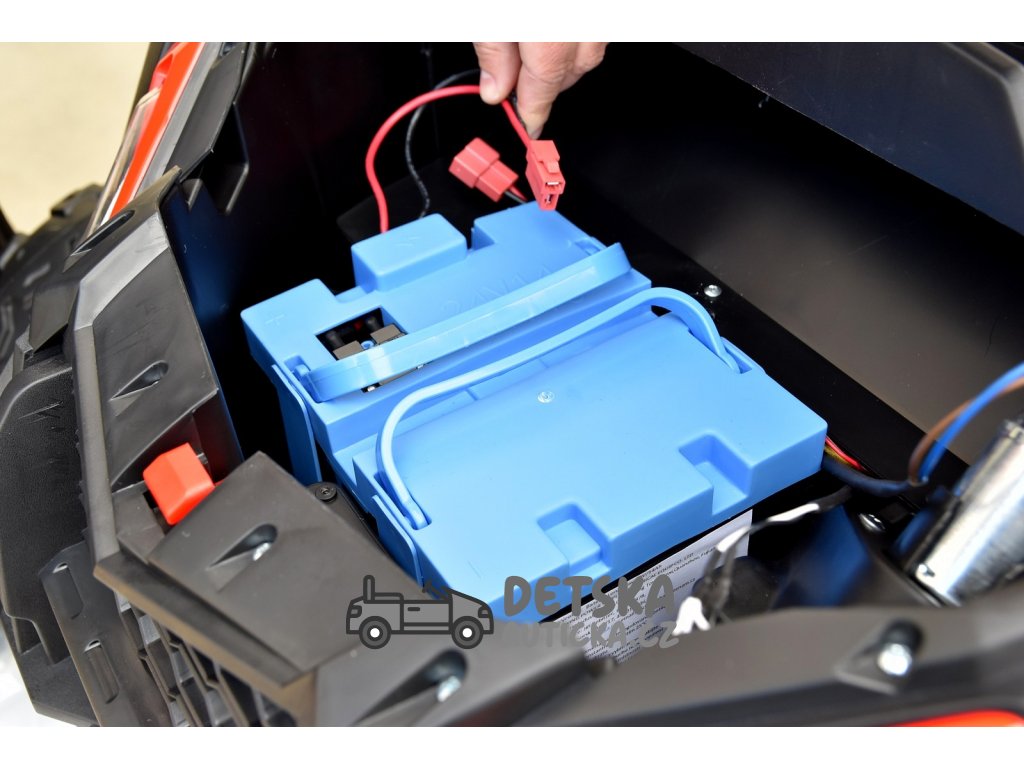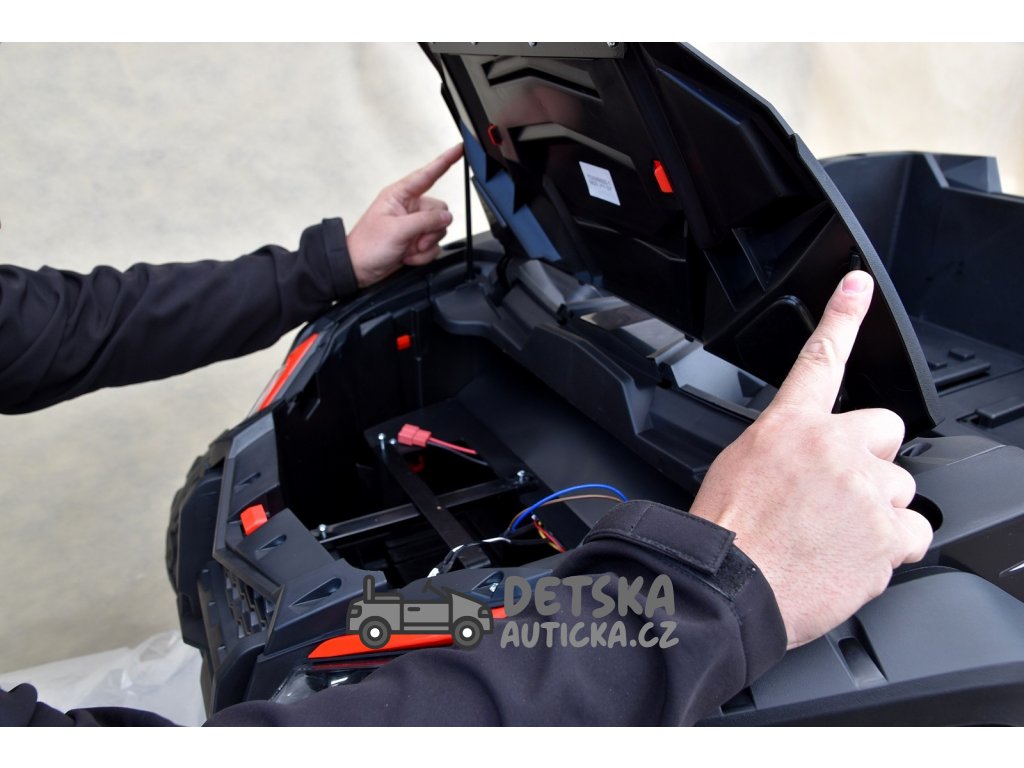 v nabídce máme i náhradní originální bateriový box 24V/14Ah s kompletní kabeláží a možností nabíjení boxu zvlášť mimo buginu, po otevření kapoty a snadné rychlé výměně za stávající vybitý box zdvojnásobíte dobu jízdy,