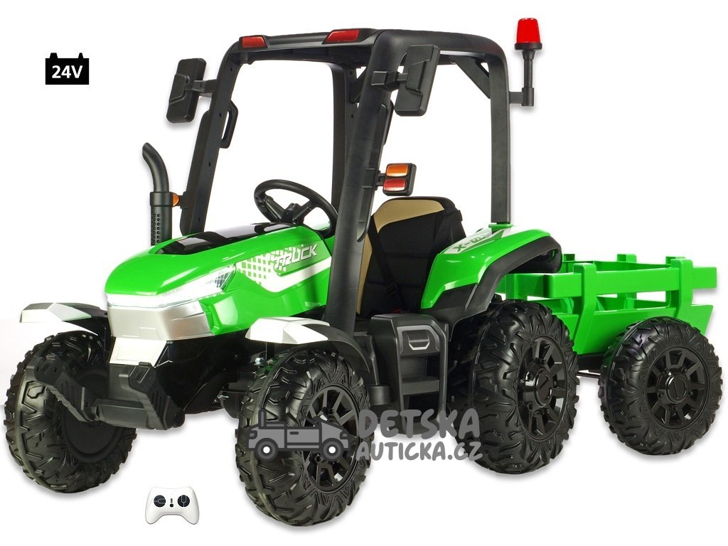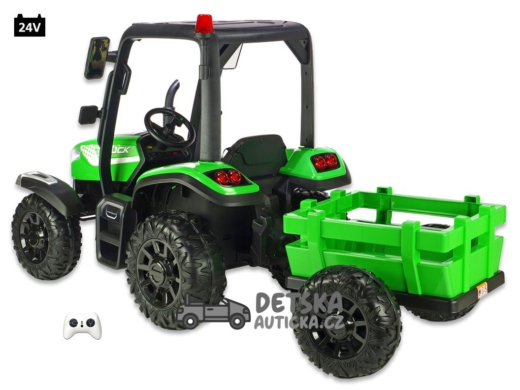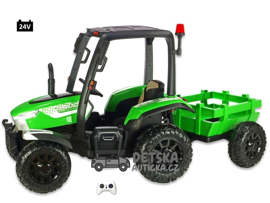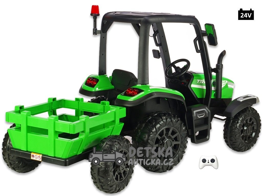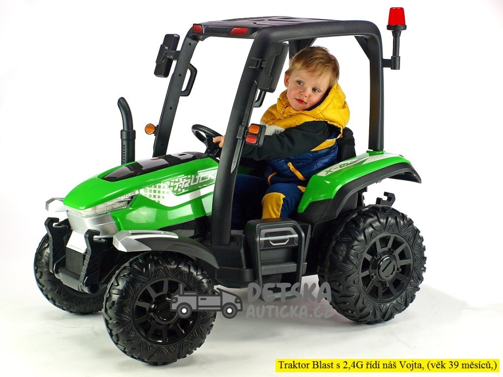 odběr v Teplicích!, Traktor Blast s 2,4G, kabinou a vlekem, 24V / 2x200W, zelený