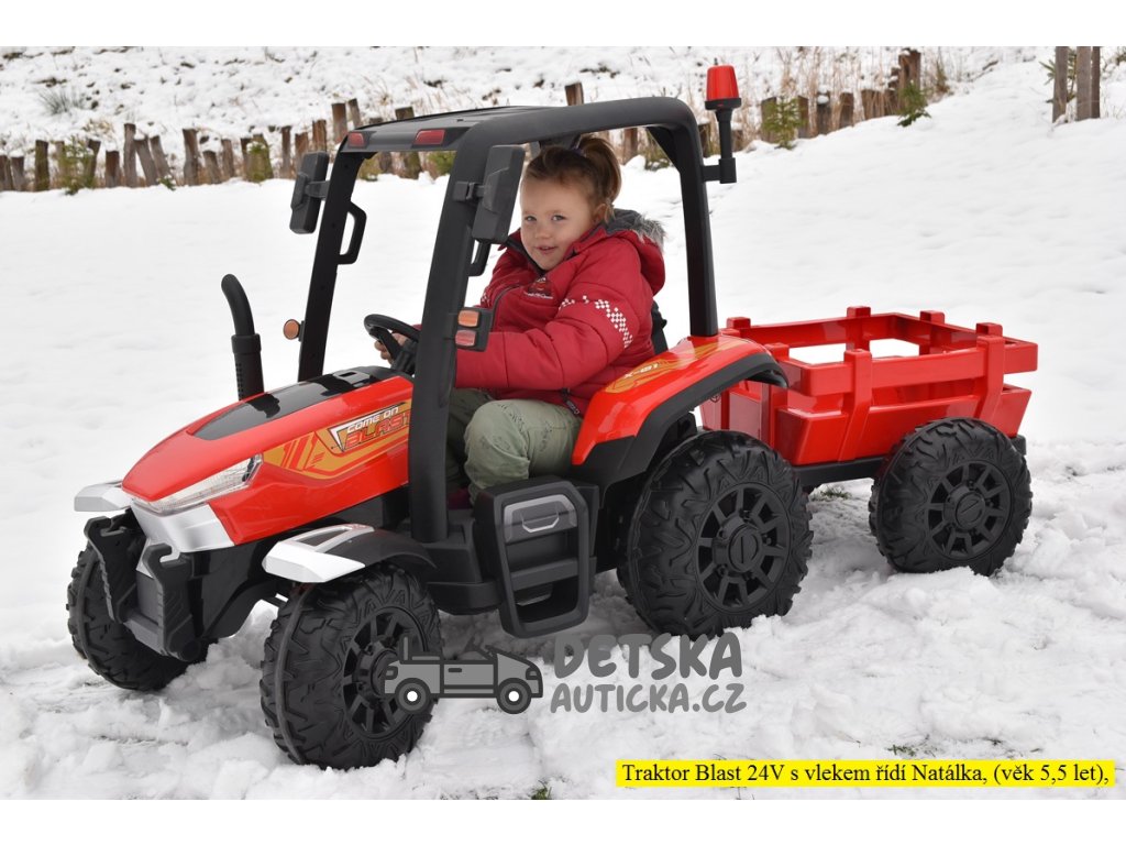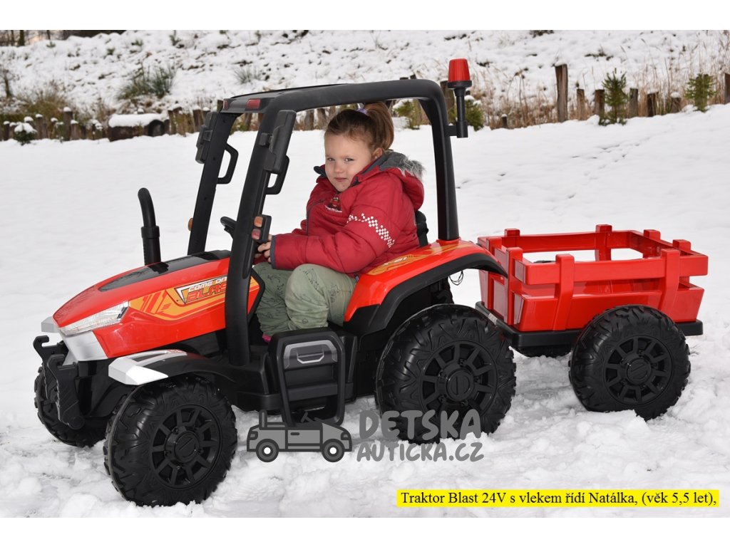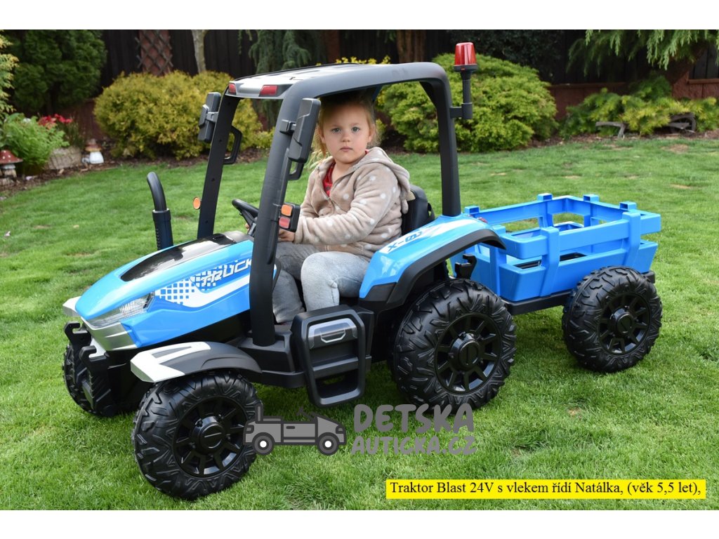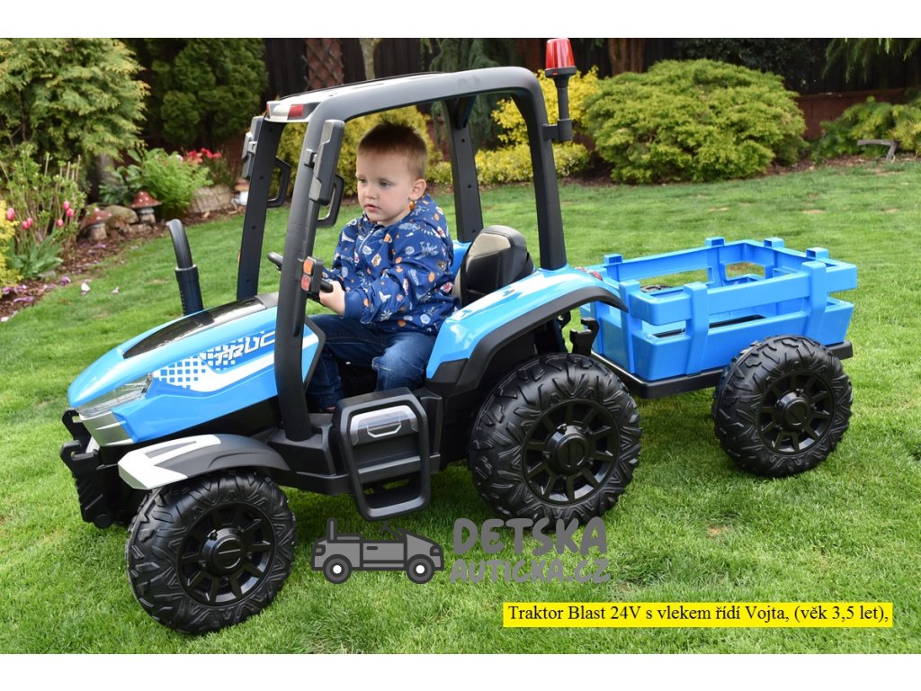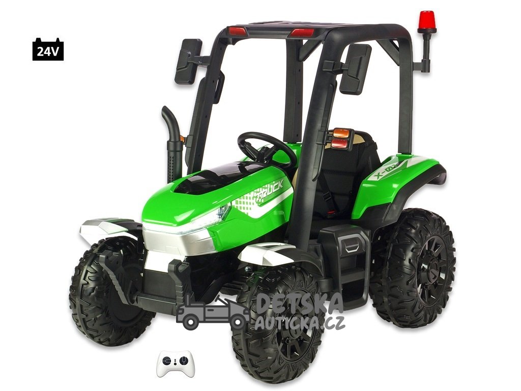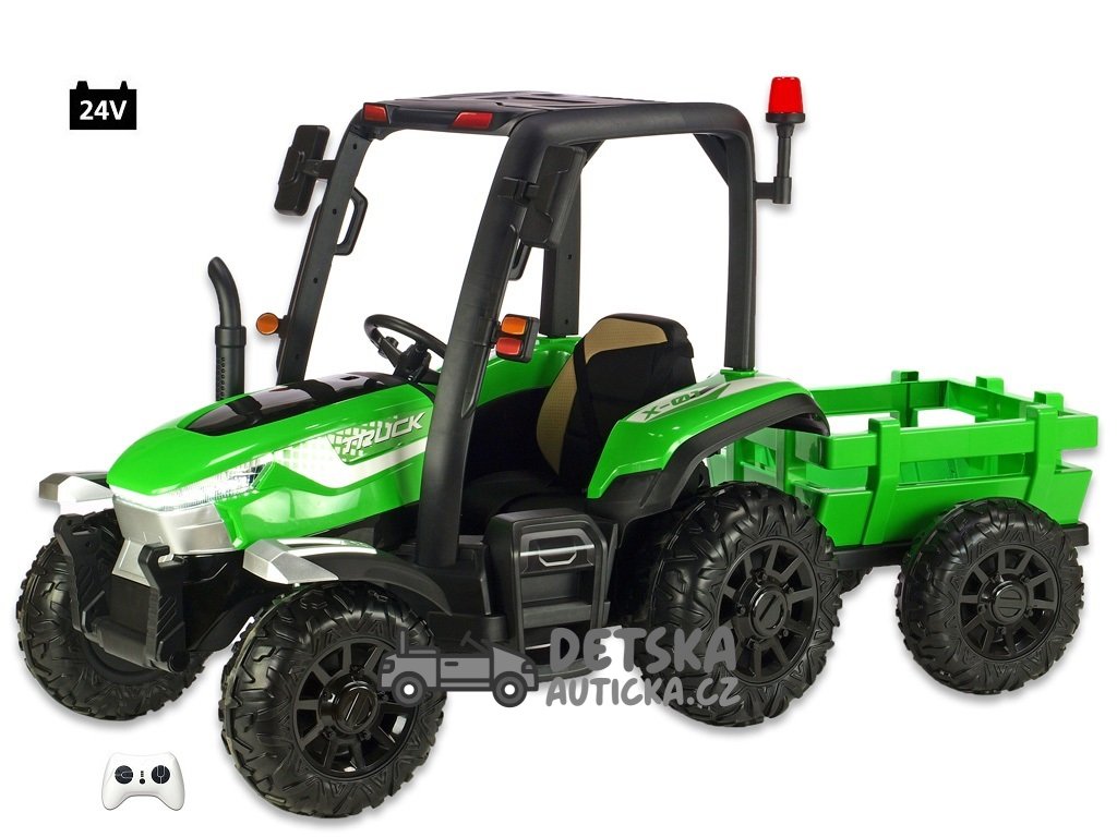 odběr v Teplicích!, Traktor Blast s 2,4G, kabinou a vlekem, 24V / 2x200W, zelený